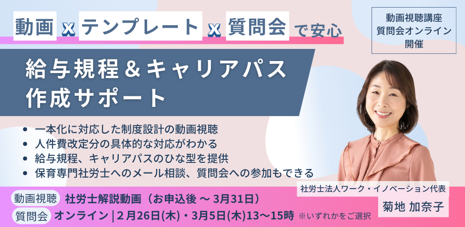 「給与規程&キャリアパス」実践講座【保育園対象】【社労士・行政書士対象】開催のお知らせ