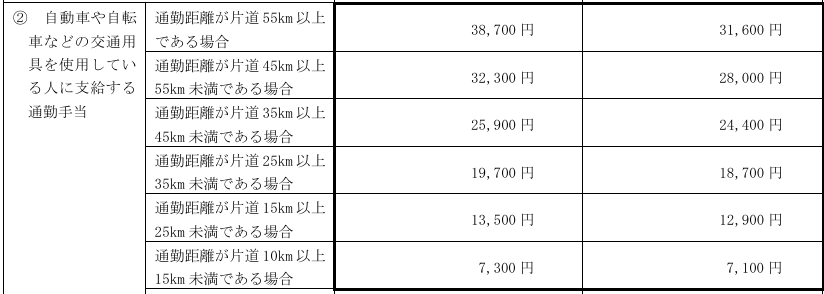 通勤距離が片道2km以上10km未満である場合の4,200円上限は据え置きですが、10km以上については、以下(PDF添付)の左の金額に増額されています。