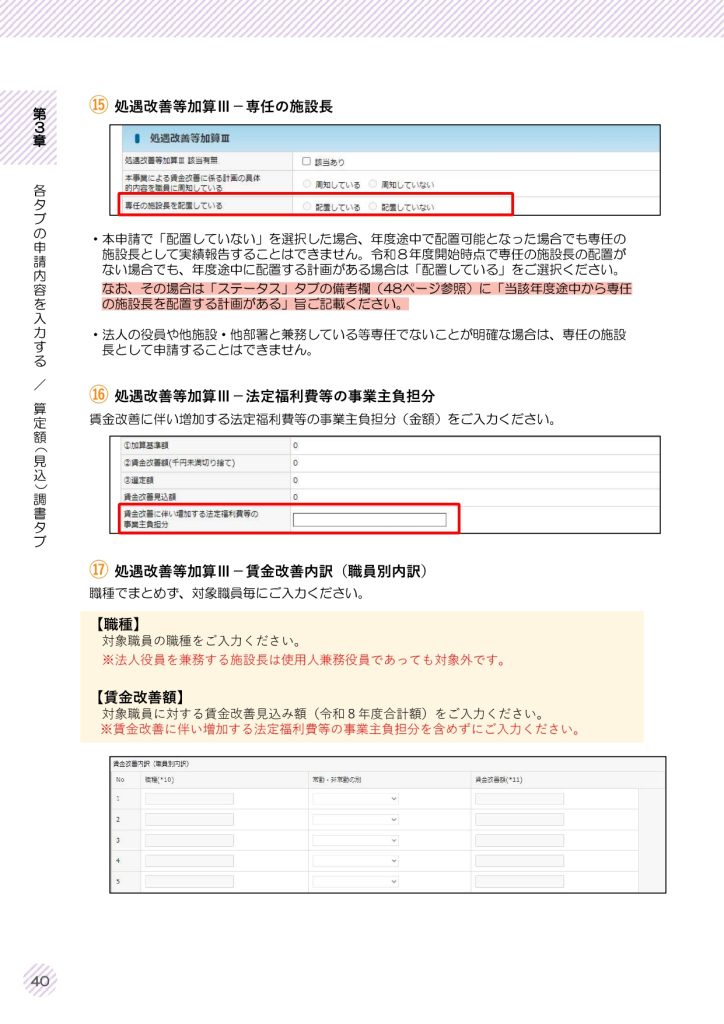 処遇改善等加算Ⅲの申請の際、専任の施設長の有無についてチェックを入れる欄がありますが、以下の点にご注意ください。